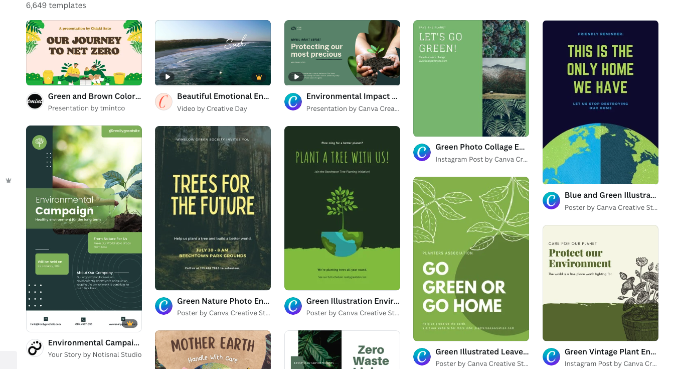 Canva has over 6,000 templates that using an Environmental theme like these or you can easily create one of your own.