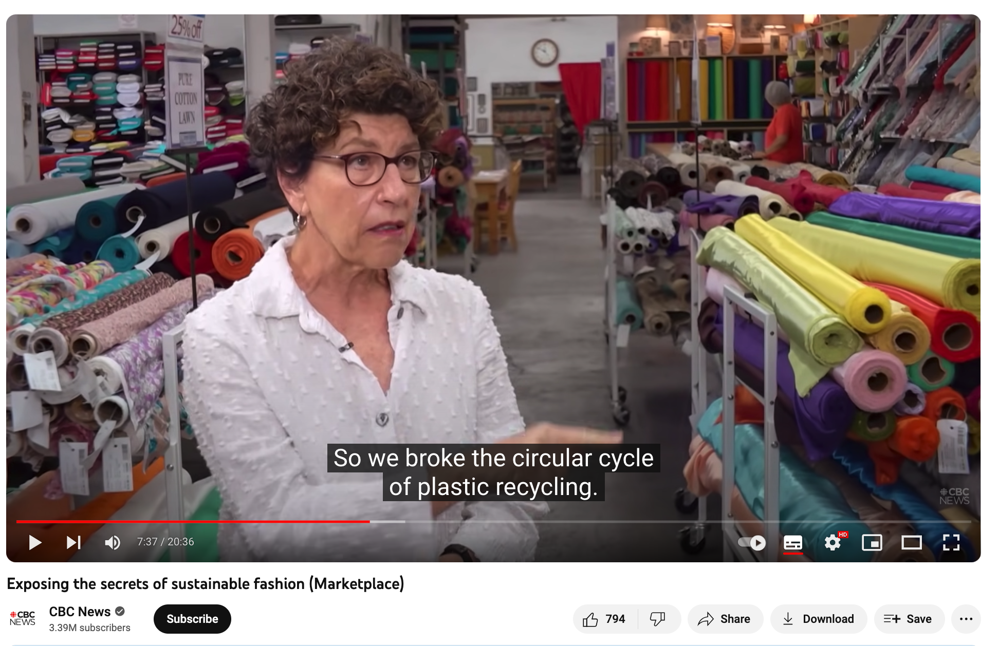 I saw a really interesting news clip the other day on Instagram with CBC News interviewing Linda Greer, who's a leading environmental scientist and a pioneer in sustainable fashion having worked with designers like Stella McCartney to change the processes to make clothes more sustainable.